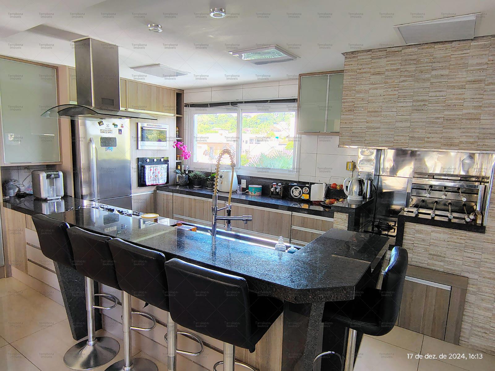 Casa com 4 suítes com sacada, sala e cozinha amplas, área de serviço, hidromassagem, térreo com cozinha completa, espaço para festas, garagem para 3 carros, banheiro, ar condicionado, calefação em todo o imóvel, aquecimento a gás, piso aquecido. quiosque, piscina.