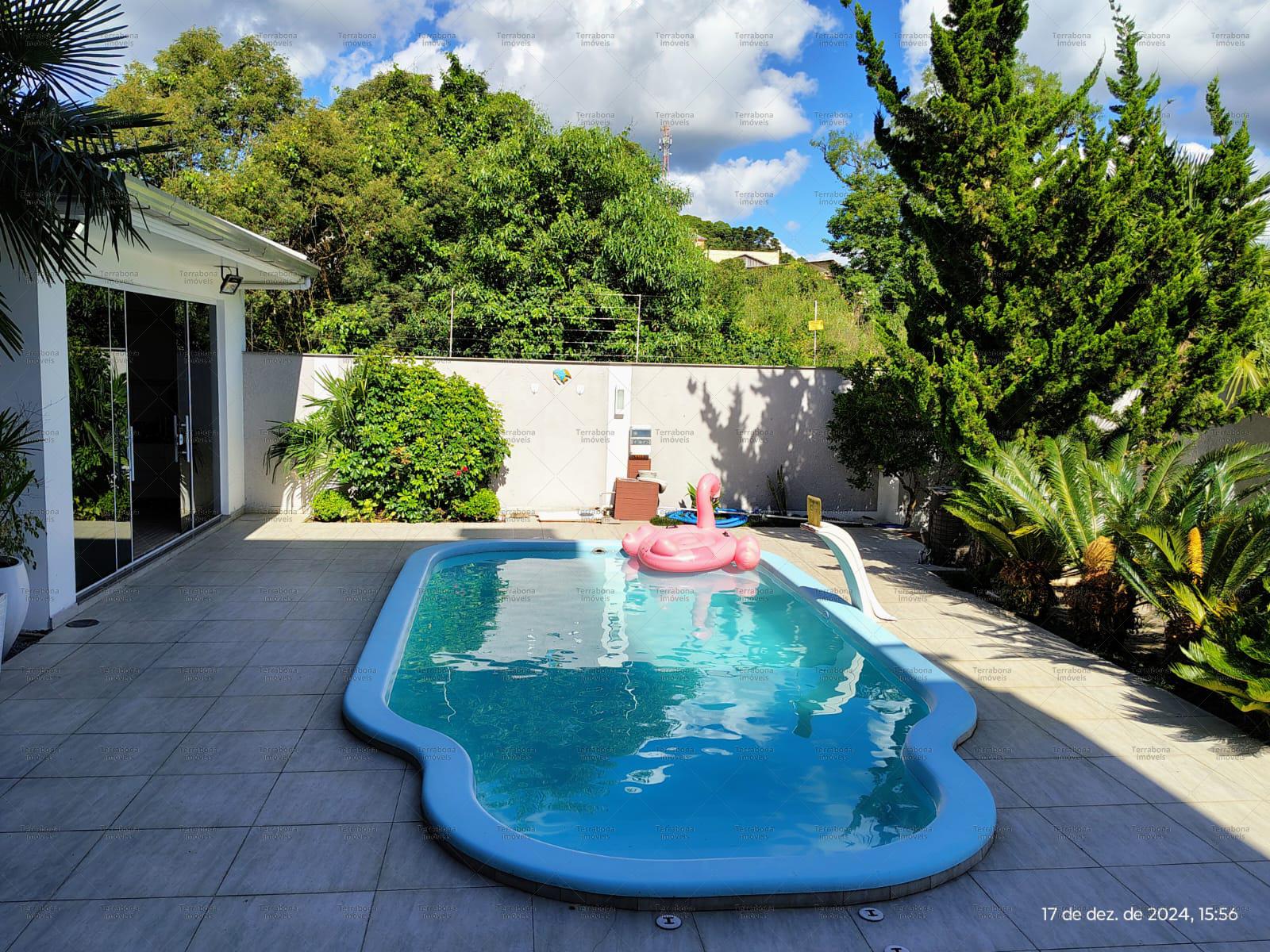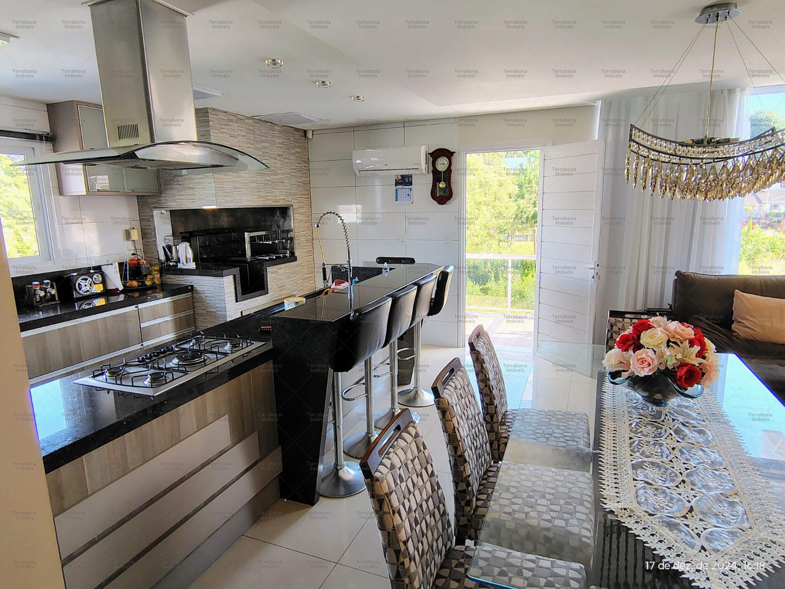 Casa com 4 suítes com sacada, sala e cozinha amplas, área de serviço, hidromassagem, térreo com cozinha completa, espaço para festas, garagem para 3 carros, banheiro, ar condicionado, calefação em todo o imóvel, aquecimento a gás, piso aquecido. quiosque, piscina.